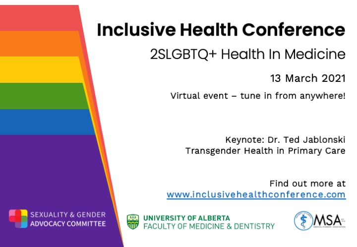 Given the current Alberta Health Services recommendations against gatherings of >50 people, especially those with critical infrastructure staff, we have made the difficult decision to cancel the 2020 Inclusive Health Conference.